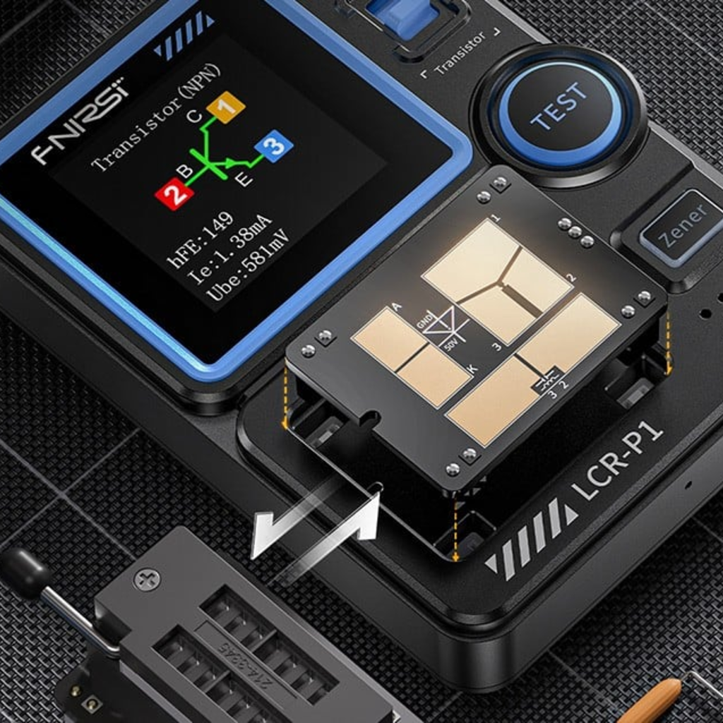 Az FNIRSI LCR-P1 lehetővé teszi az elektronikus alkatrészek, például tranzisztorok, diódák, kondenzátorok, ellenállások, induktorok és egyéb alkatrészek gyors tesztelését. A tesztelő 1,44 hüvelykes kijelzővel, automatikus alkatrészfelismeréssel, NEC infravörös jeldekódolással és hibás bekötésvédelmi funkcióval rendelkezik. A készüléket egy beépített 300 mAh-s akkumulátor táplálja, és USB-C porton keresztül tölthető, így sokoldalúan használható otthoni, műhelyi és oktatási célokra.