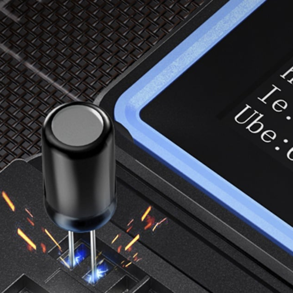 Égésgátló védelem: Az Anti-Burn intelligens védelmi funkció megvédi a készüléket a töltetlen kondenzátor csatlakoztatásának hatásaitól. Ezáltal a teszter immunis a felhasználói hibákkal szemben, és biztonságos a mindennapi használatra.