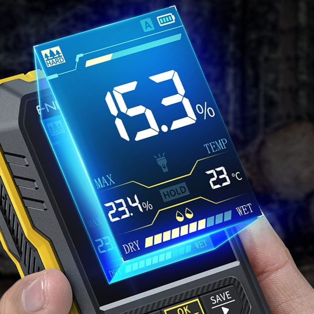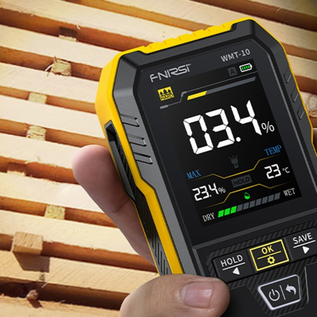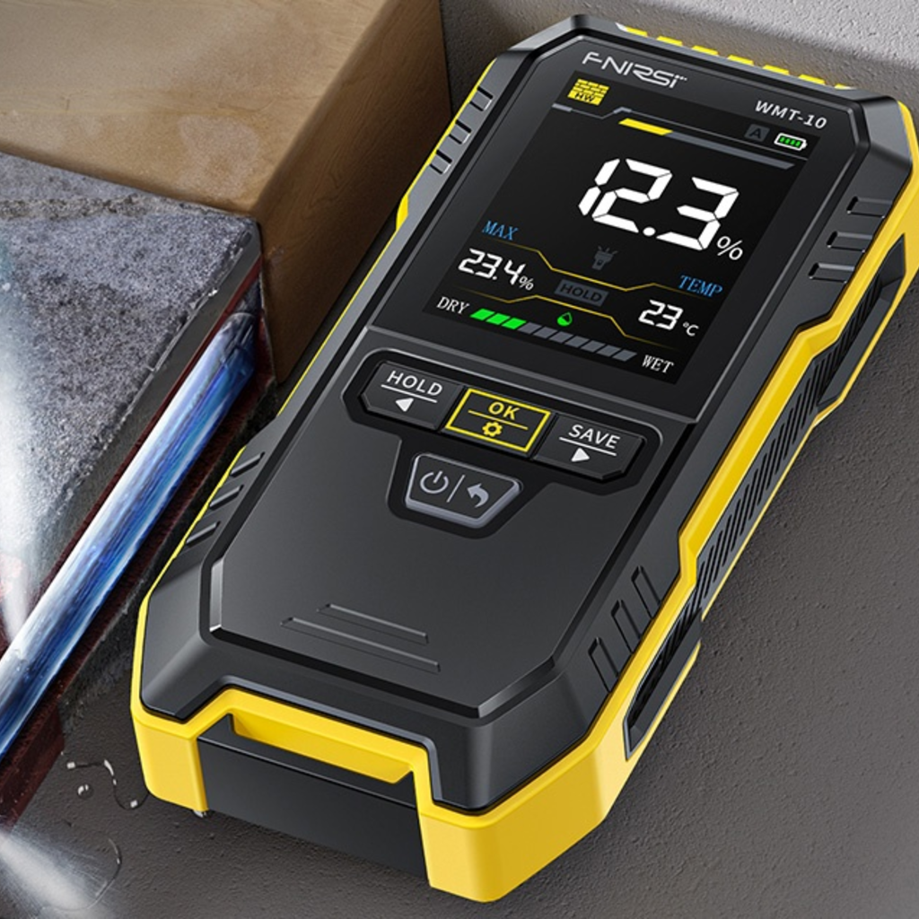 Az FNIRSI WMT-10 egy fejlett, nem invazív nedvességmérő, amely gyors és pontos leolvasást biztosít a felületek kilyukasztása nélkül. Indukciós technológiájának és négy mérési módjának köszönhetően jól használható faanyagok, valamint falak, padlók vagy építőanyagok vizsgálatára. A nagy felbontás (0,1%) és a széles, akár 75%-os mérési tartomány lehetővé teszi, hogy másodpercek alatt pontos eredményeket kapjunk. A nagyméretű, 2,4"-os TFT színes képernyő sötét helyiségekben is biztosítja az olvashatóságot, a beépített zseblámpa pedig tovább segíti a munkát nehéz körülmények között is.