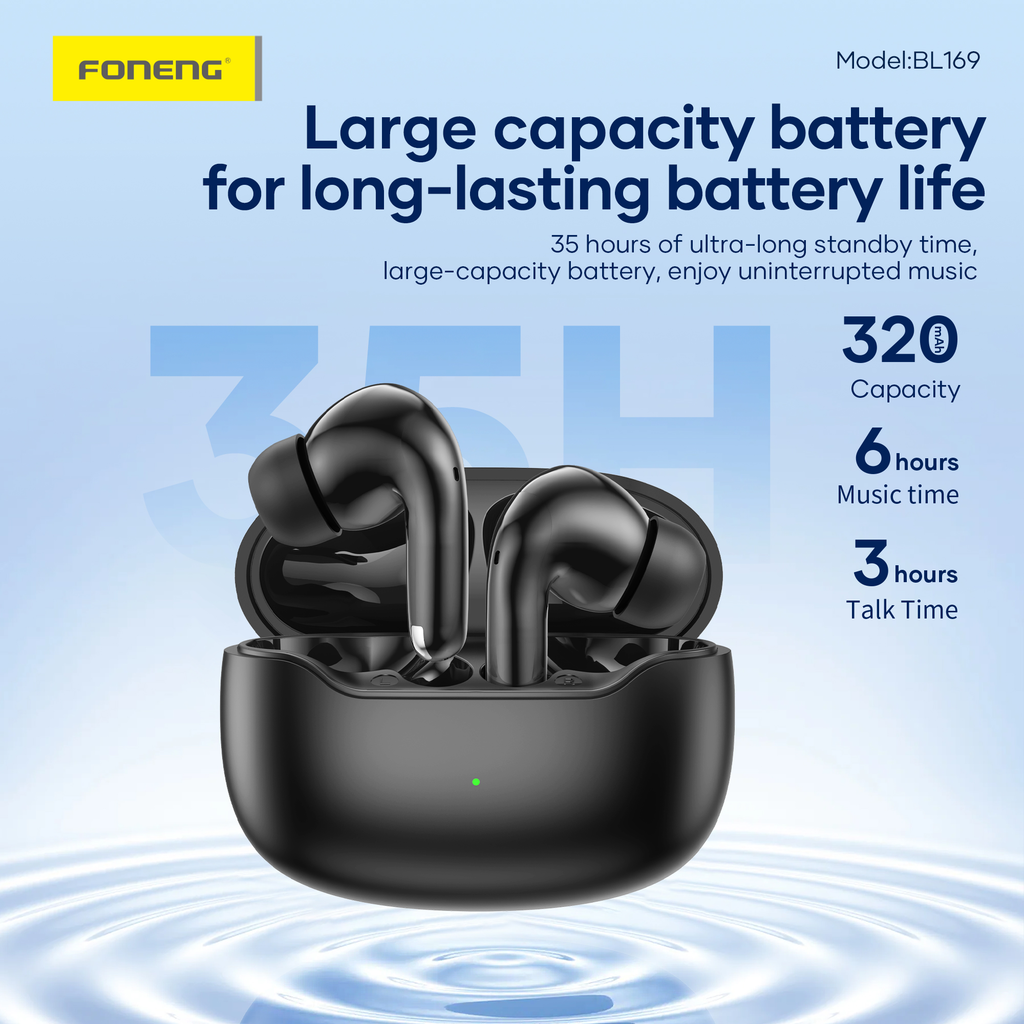 FONENG vezeték nélküli fülhallgató (ANC+ENC) BL169 Fekete