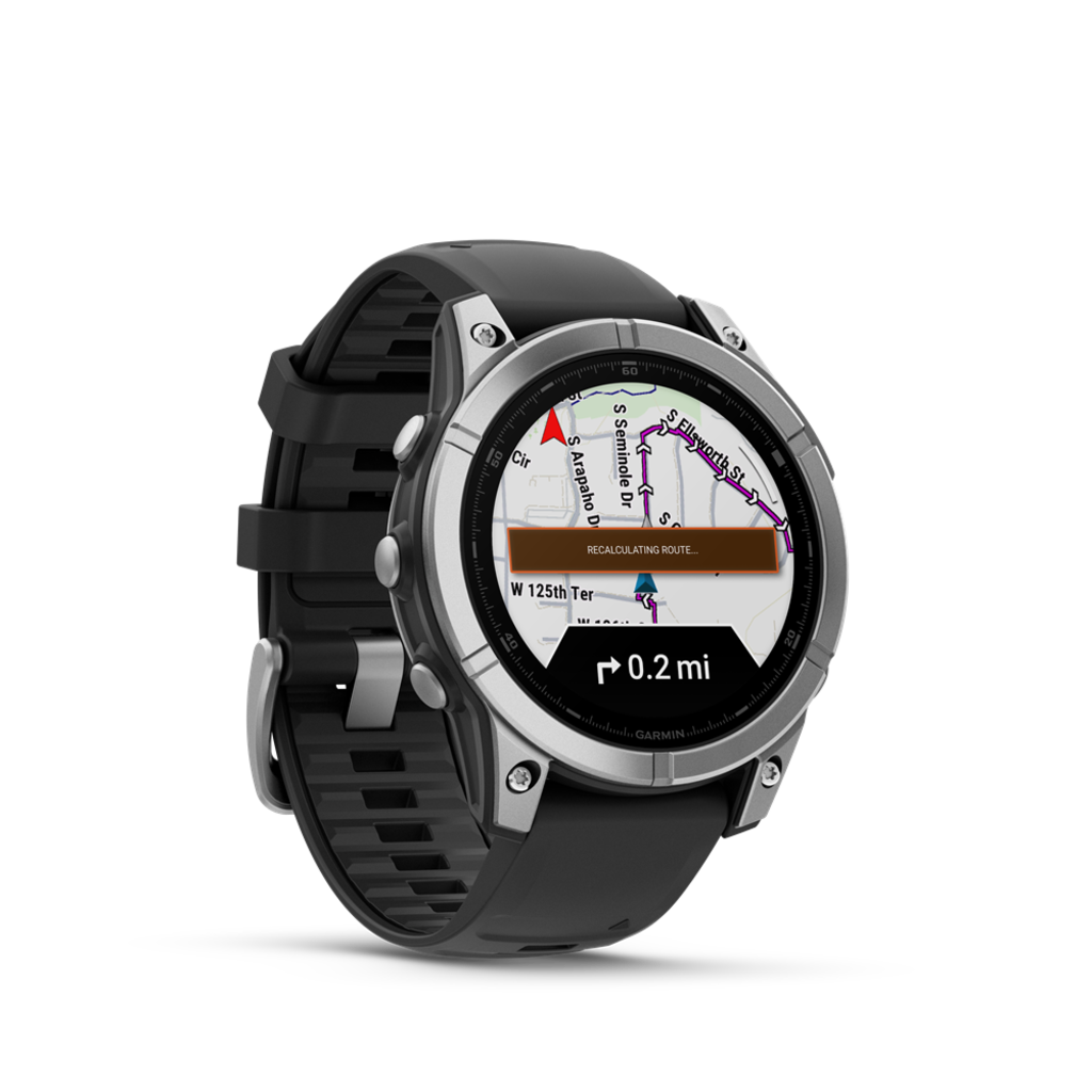 GARMIN fenix E, Stainless steel w/Black Silicone Band, 47 mm