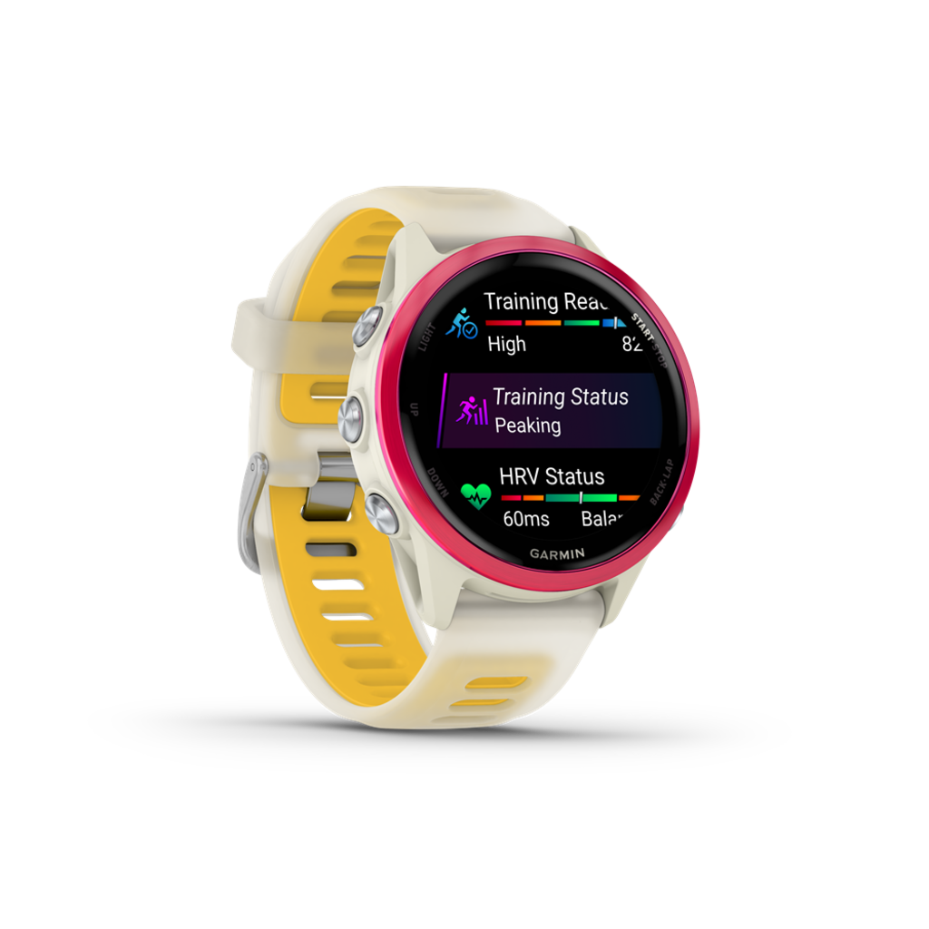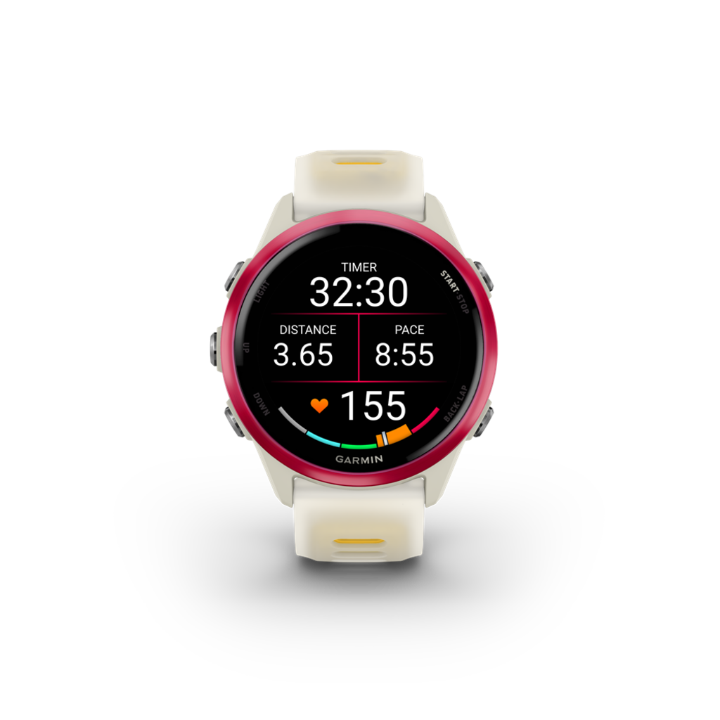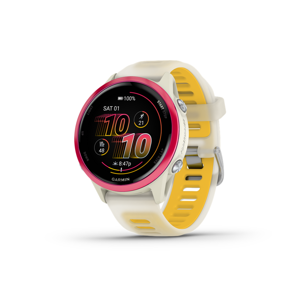 - Kiemelkedő dizájn: A 42mm-es, fehér óratokkal, a merész málna színű kijelző kerettel és a kéttónusú fehér-sárga szíjjal a Forerunner 570 nem csak okos, de divatos kiegészítője is lesz megjelenésednek.