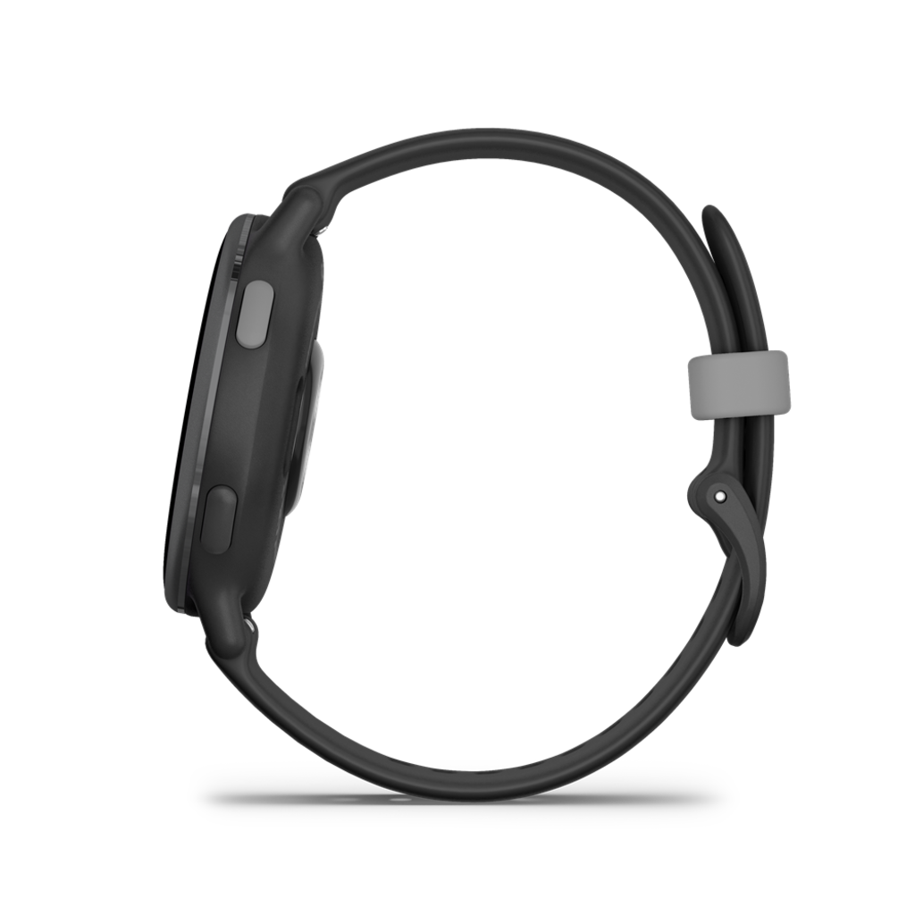 A Garmin Vivoactive 5 egy ragyogó, kerek AMOLED érintőkijelzővel rendelkezik, amely élénk színeket és kristálytiszta képet biztosít, így az idő (pl. 10:10), a dátum (pl. Szombat 01) és az összes fontos adat mindig jól látható. A kijelzőn megjelenő ikonok — mint az akkumulátor töltöttsége, a zenevezérlés, az aktivitáskövetés és az értesítések — azonnali áttekintést nyújtanak. A karcsú profil és a két oldalsó gomb tovább egyszerűsíti a navigációt és a funkciók elérését.