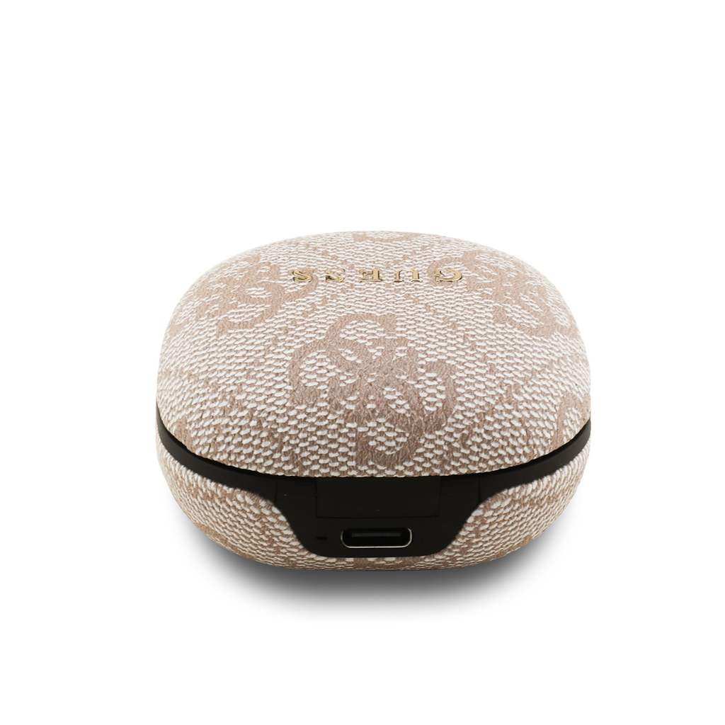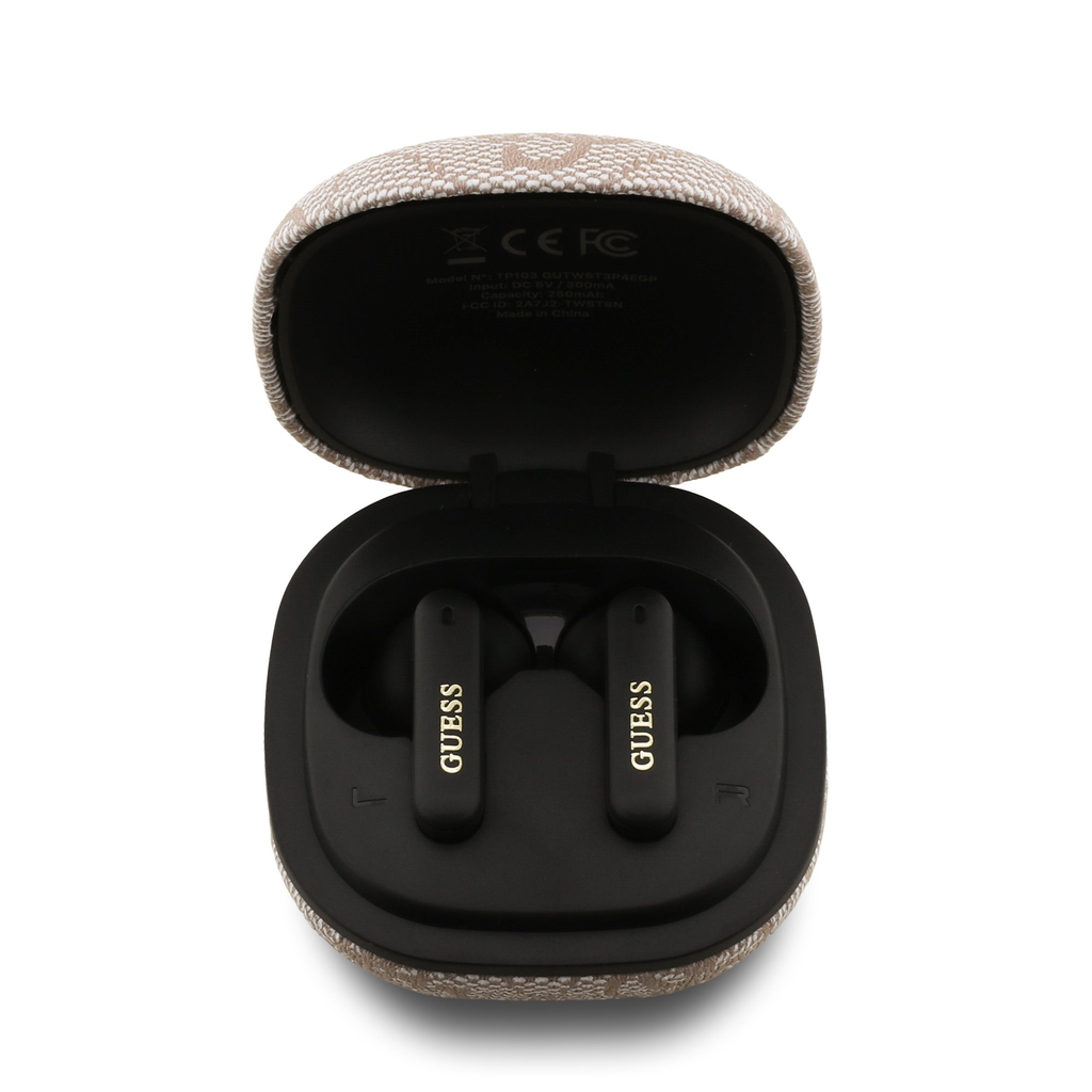 • Stílusos töltőtok: Az elegáns Guess logóval ellátott töltőtok nemcsak megvédi a fülhallgatókat, hanem teljesen feltöltve is tartja őket. A tok kompakt, így könnyen elfér a zsebben vagy a táskában.