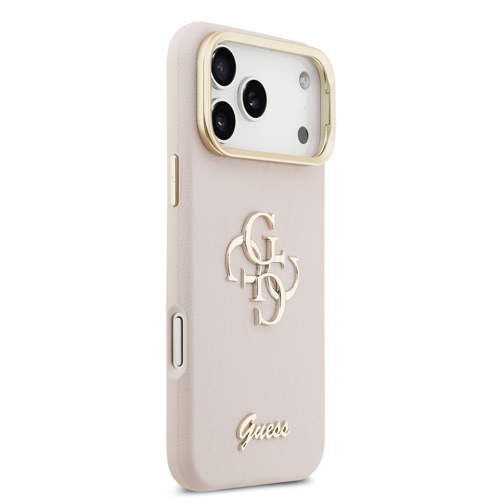 Guess PU Grained 4G Logo Stand Camera Frame tok iPhone 17 Pro Max Pink