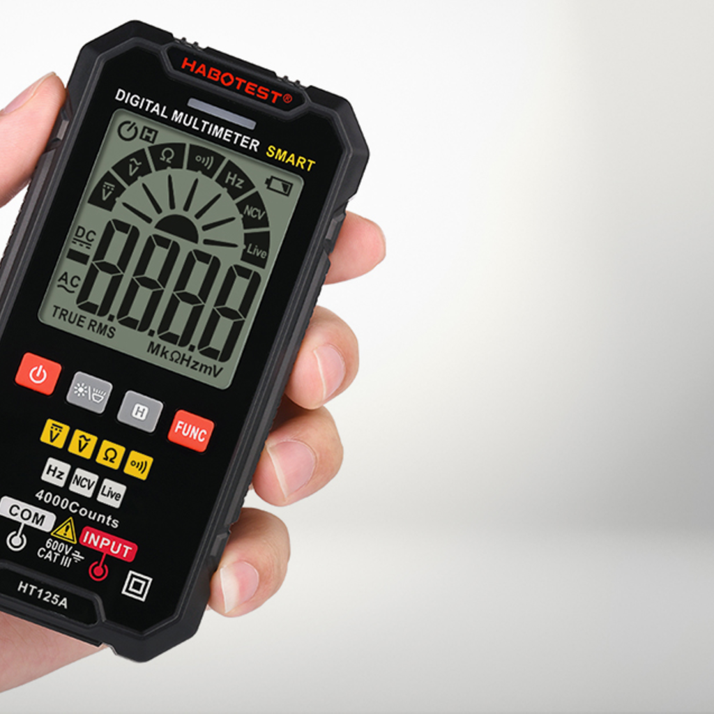 Számos hasznos funkció A Habotest HT125A digitális univerzális multiméter egy praktikus eszköz, amely lenyűgöző képességekkel rendelkezik. Lehetővé teszi az AC és DC feszültség, ellenállás, folytonosság vagy frekvencia mérését, többek között. Ezenkívül Élő Teszt funkcióval rendelkezik, dióda tesztelést, érintésmentes feszültségérzékelést (NCV) és még sok mást is kínál. Fontos, hogy a multiméter praktikus gombokkal rendelkezik, amelyekkel hatékonyan választhatjuk ki a funkciókat.