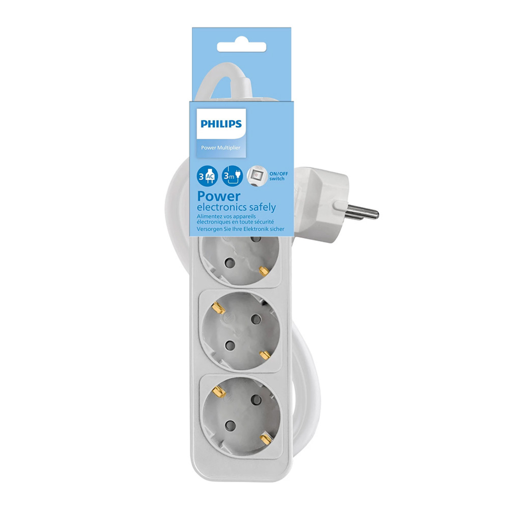 Hálózati hosszabbító PHILIPS elosztó 3 Schuko aljzattal 1,5m 10A fehér