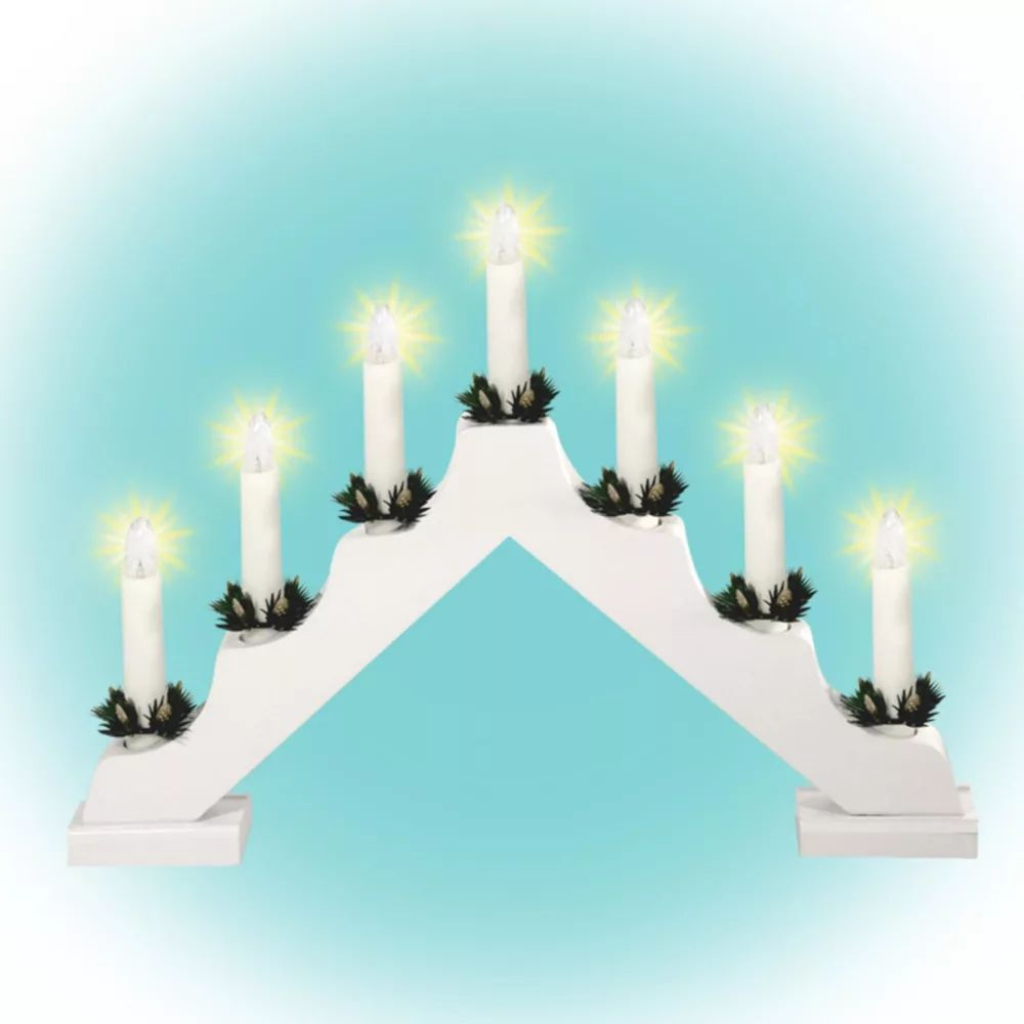 Home KAD 03 gyertyapiramis, 7 db izzó, fehér festett fa, L7D