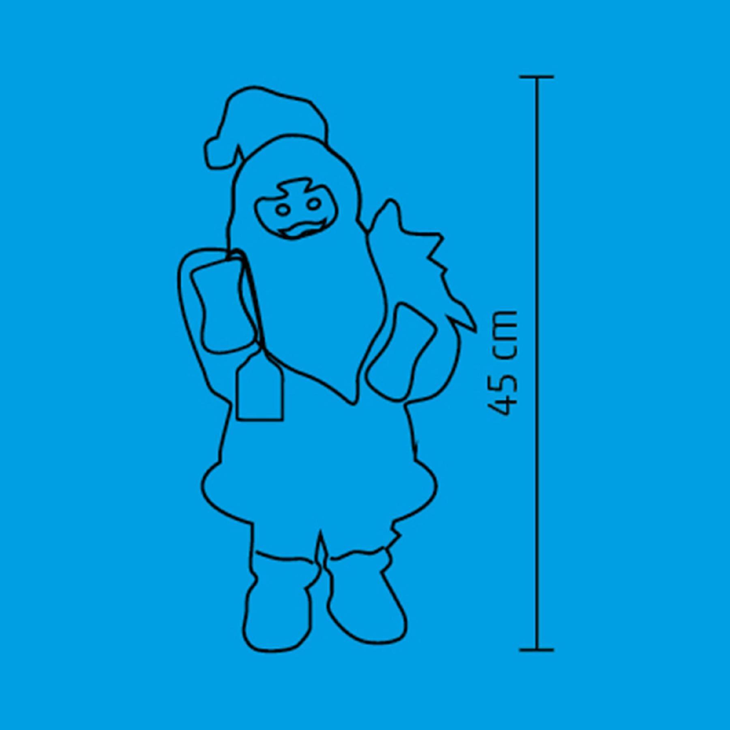 A 45 cm magas Mikulás figura látványos méretével, zenére mozgó vidám mozdulataival és kellemes hangulatot árasztó dallamaival garantáltan az ünnepi dekoráció egyik legszórakoztatóbb eleme lesz. A beltéri kivitelű figura 3 darab 1,5 V-os AA elemmel működik (nem tartozék), így bárhol elhelyezheti otthonában, ahol szükség van egy kis extra vidámságra és karácsonyi hangulatra. A Mikulás tökéletesen illik a nappaliba, a gyerekszobába vagy akár az előszobába is, ahol táncával mindenkit meglep és szórakoztat.