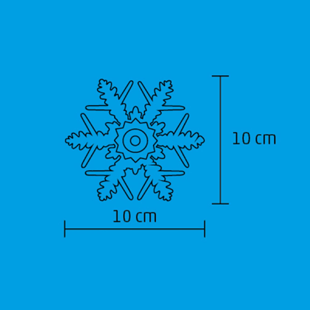 A hidegfehér LED kellemes, ünnepi hangulatot teremt, miközben stílusosan világítja meg az ablakot vagy bármilyen más sima felületet. Az öntapadós kialakításnak köszönhetően könnyen felhelyezhető, és stabilan rögzíthető az ablaküvegen, anélkül hogy kábelekre lenne szükség. A dekoráció 2 darab CR2032 elemmel működik (tartozék), így azonnal használatra kész, és bárhol elhelyezhető a lakásban. Kompakt méretével (Ø 10 x 3,5 cm) remekül illik kisebb ablakokba is, de akár ajtókra, tükrökre is elhelyezhető, hogy még varázslatosabbá tegye az ünnepi fényeket otthonában.