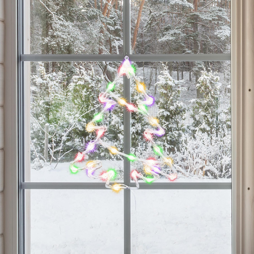 Home KID502M fenyőfa ablakdísz, kül- és beltéri kivitel, 35 db színes LED, 2 tapadókorong, fehér tápkábel, 33 x 28 cm
