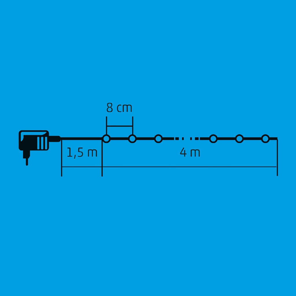 A KII 50B/WW pontosan ilyen: egy beltéri kivitelű, állófényű fényfüzér, melyben 50 melegfehér LED gyönyörködteti szemét.