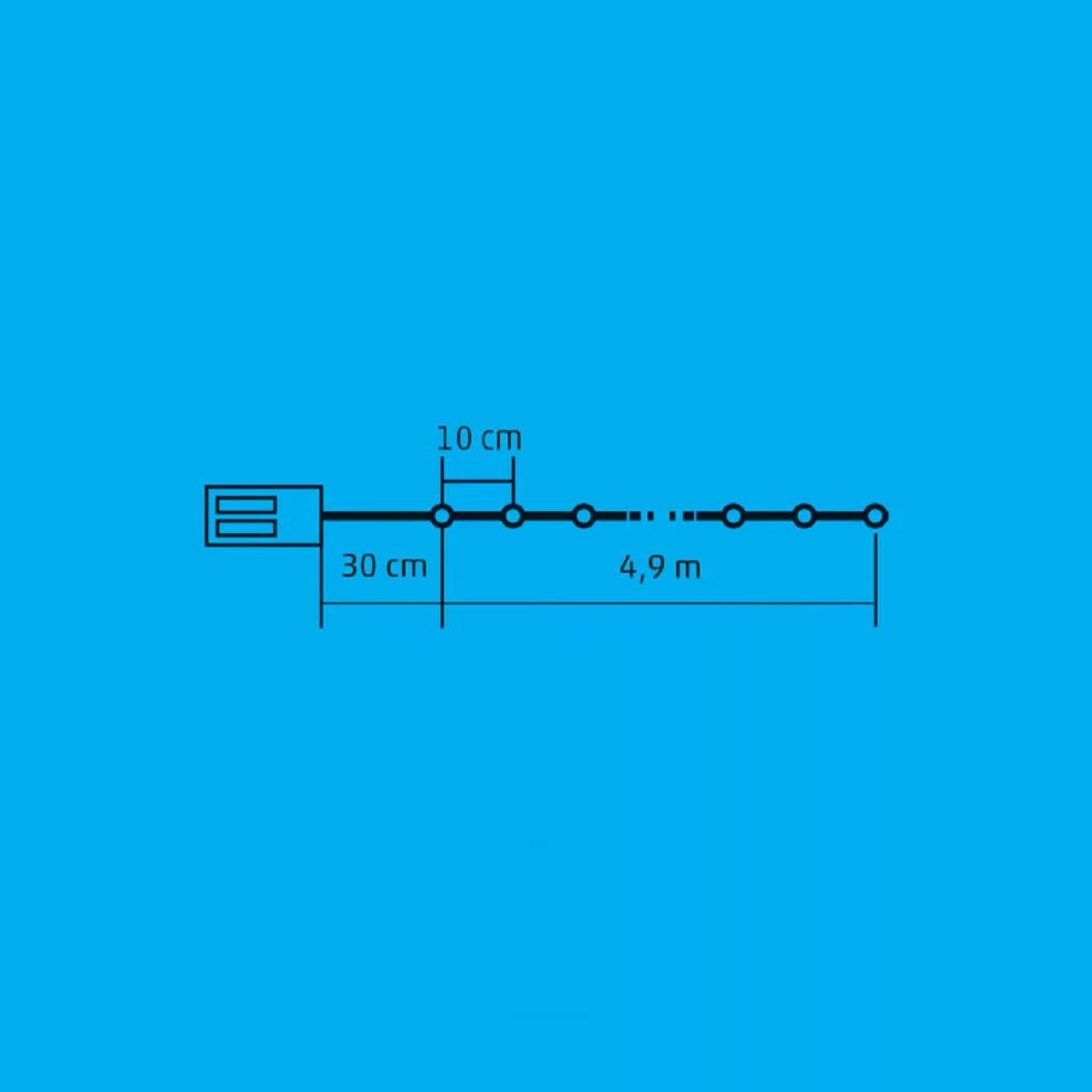 ML 50/M pont ezt kínálja: egy beltéri fényfüzér 50 db színes