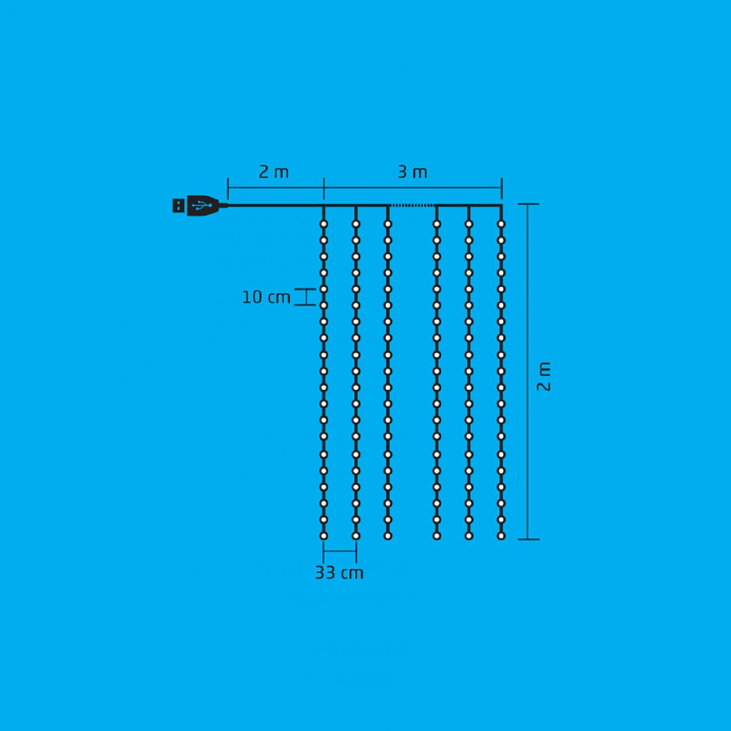 Home MLF 200/WW micro LED-es fényfüggöny, 3x2 m / 200 db melegfehér micro LED, 8 fényprogram, távirányító, USB csatlakozó, beltéri kivitel