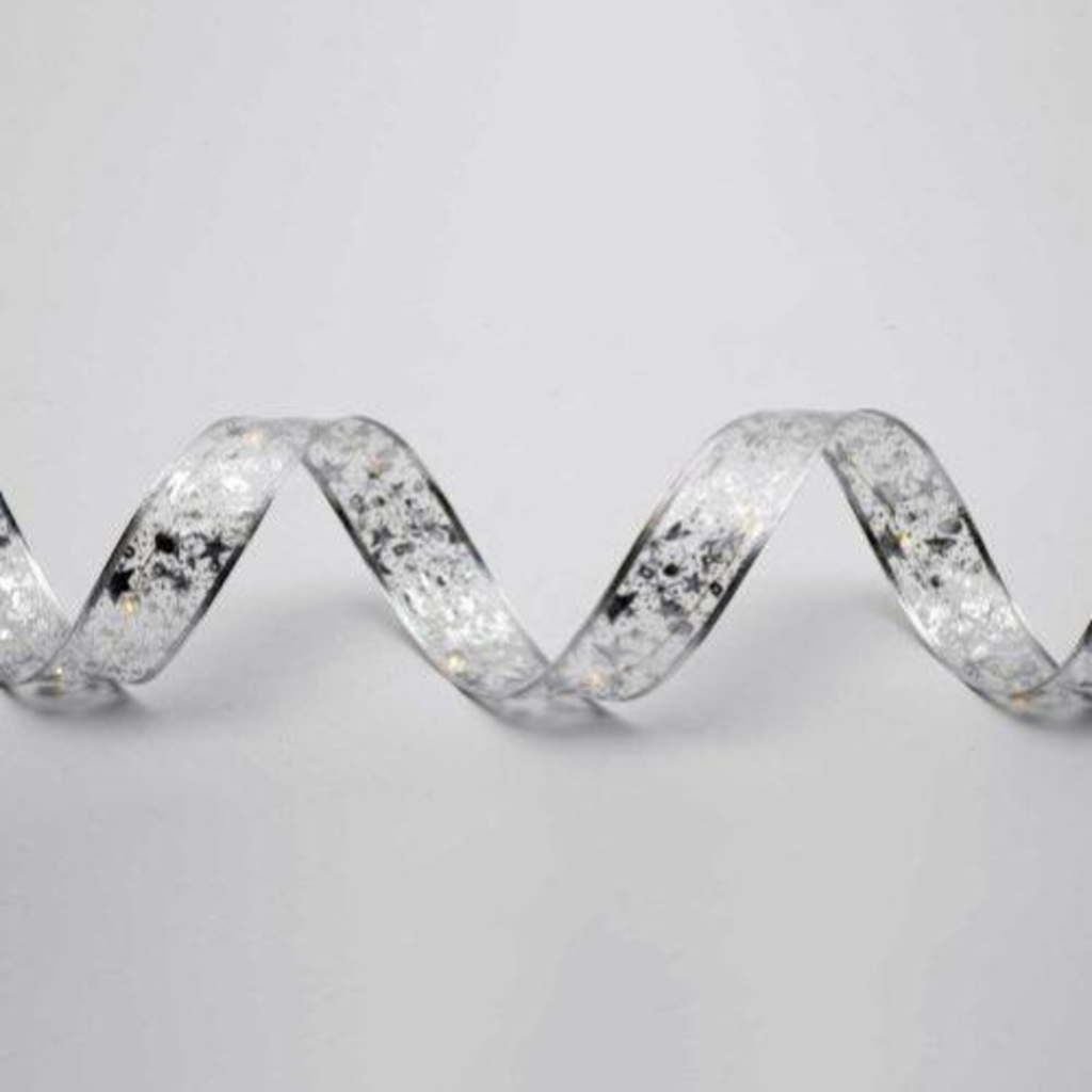 A fényfüzér 10 méter hosszúságú, 5 cm széles ezüst szalagot kínál, amely egyaránt alkalmas polcokra, ablakkeretekre, kandallópárkányokra vagy akár asztali dekorációként is. A LED-ek 10 cm-enkénti elhelyezése biztosítja az egyenletes fényeloszlást, így minden részlet megkapja a megfelelő kiemelést.