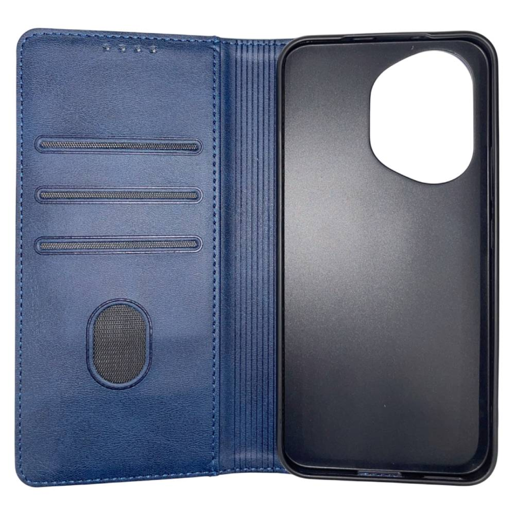 Honor 400 Lite mágneses PU bőr fliptok kártyatartóval pánt nélküli kék Alphajack
