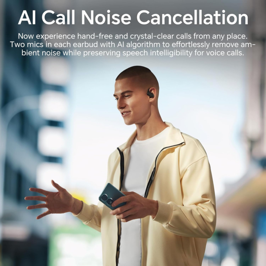 Élvezd a tiszta, interferenciamentes hívásokat a fejlett zajszűrő technológia segítségével, amelyet minden fülhallgatóba épített két mikrofon támogat. Az intelligens AI algoritmus kiszűri a háttérzajt, megőrizve a hangod tisztaságát és természetességét bármilyen környezetben.
