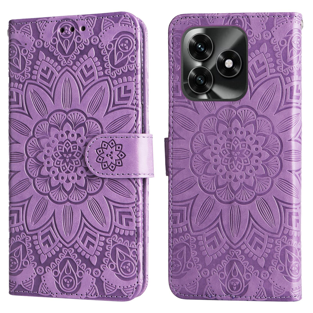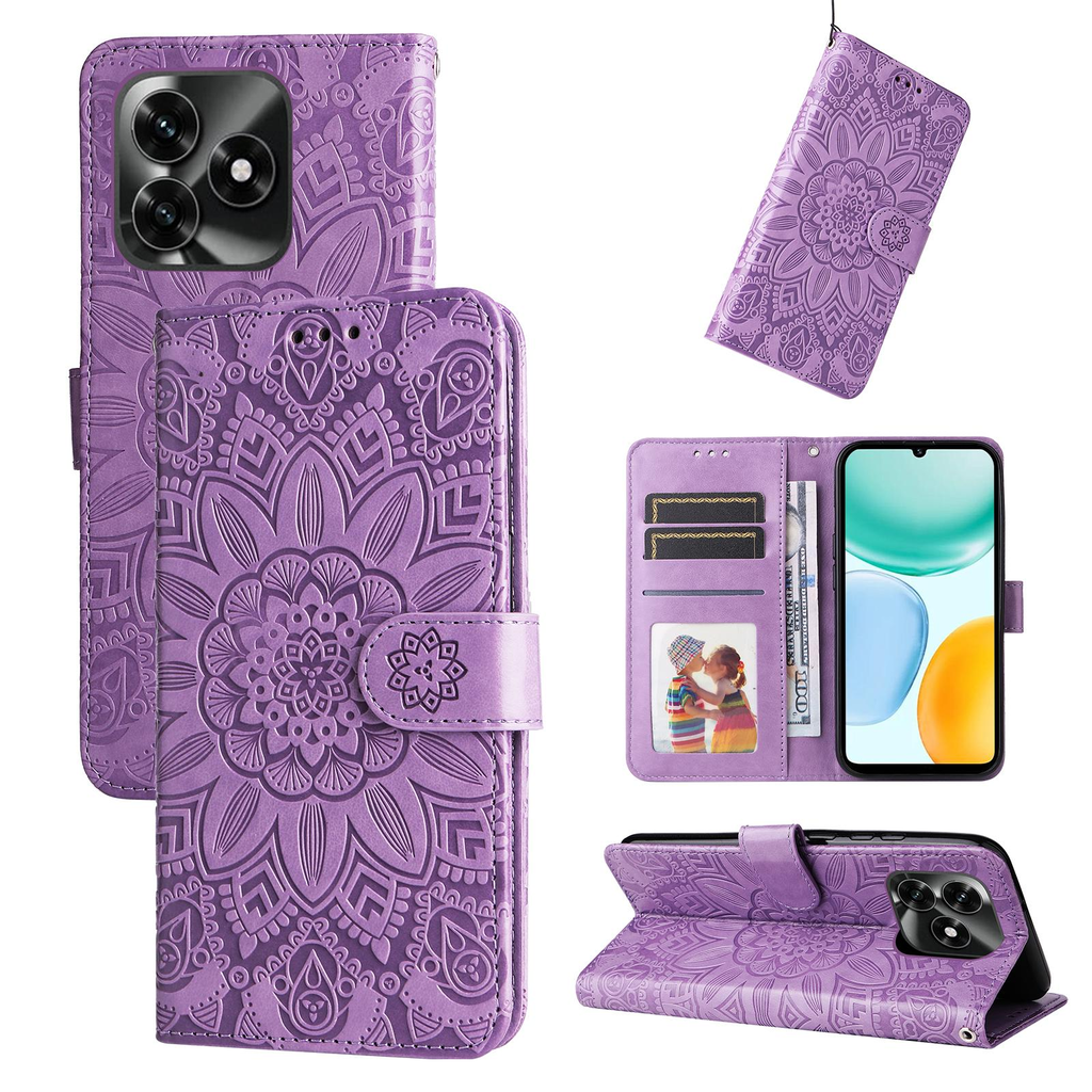 Honor X5c Plus dombornyomott napraforgó mintás bőrtok (lila)