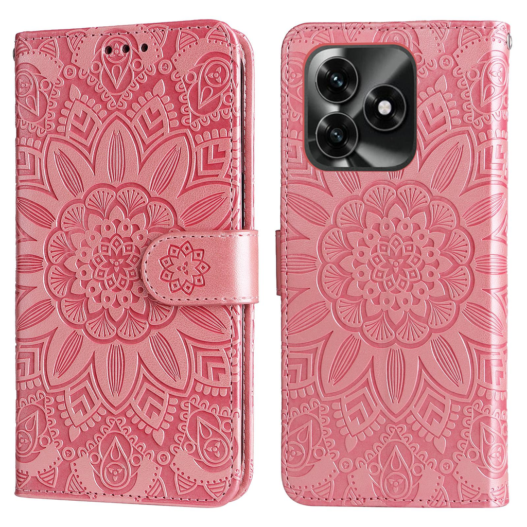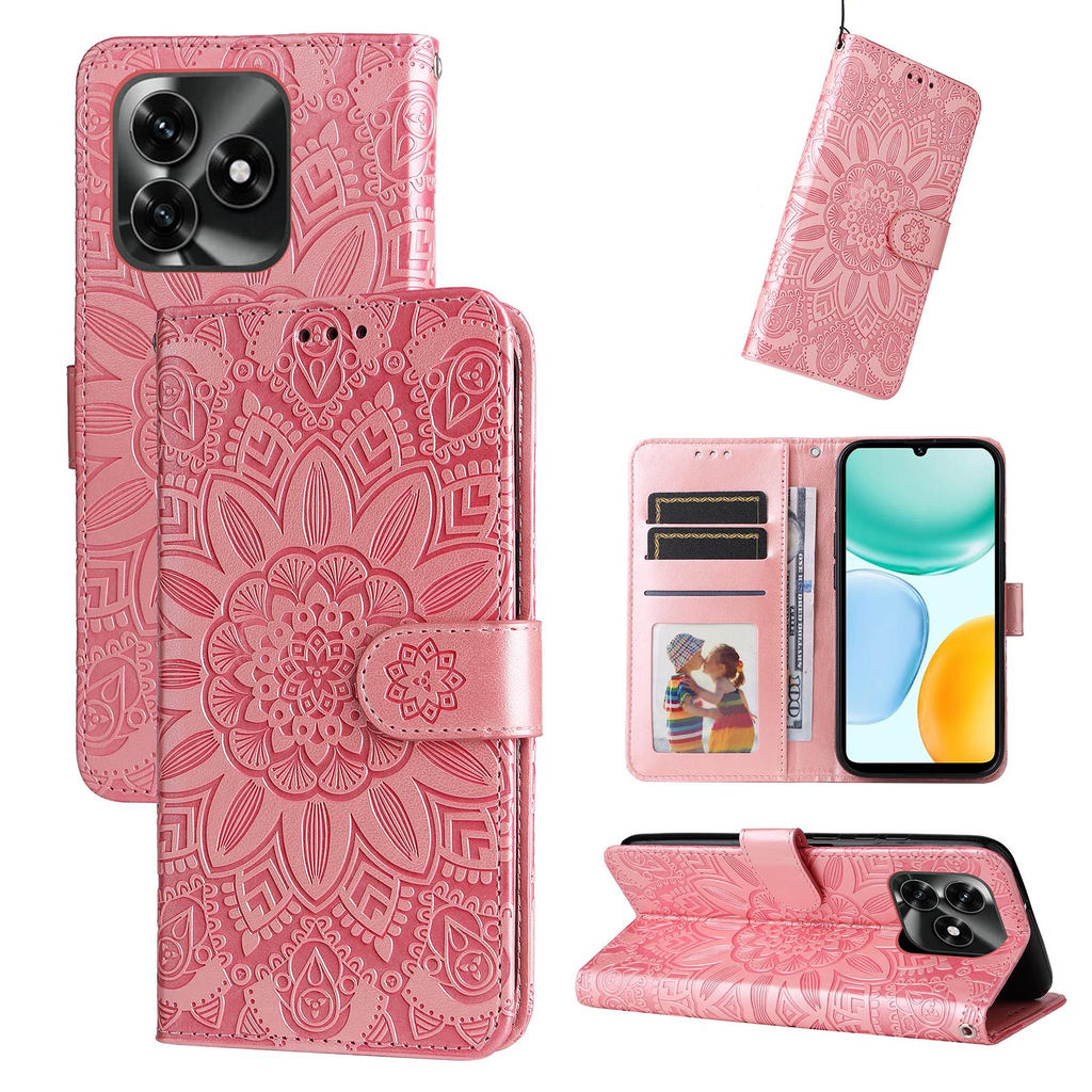 Honor X5c Plus dombornyomott napraforgó mintás bőrtok (rózsaszín)