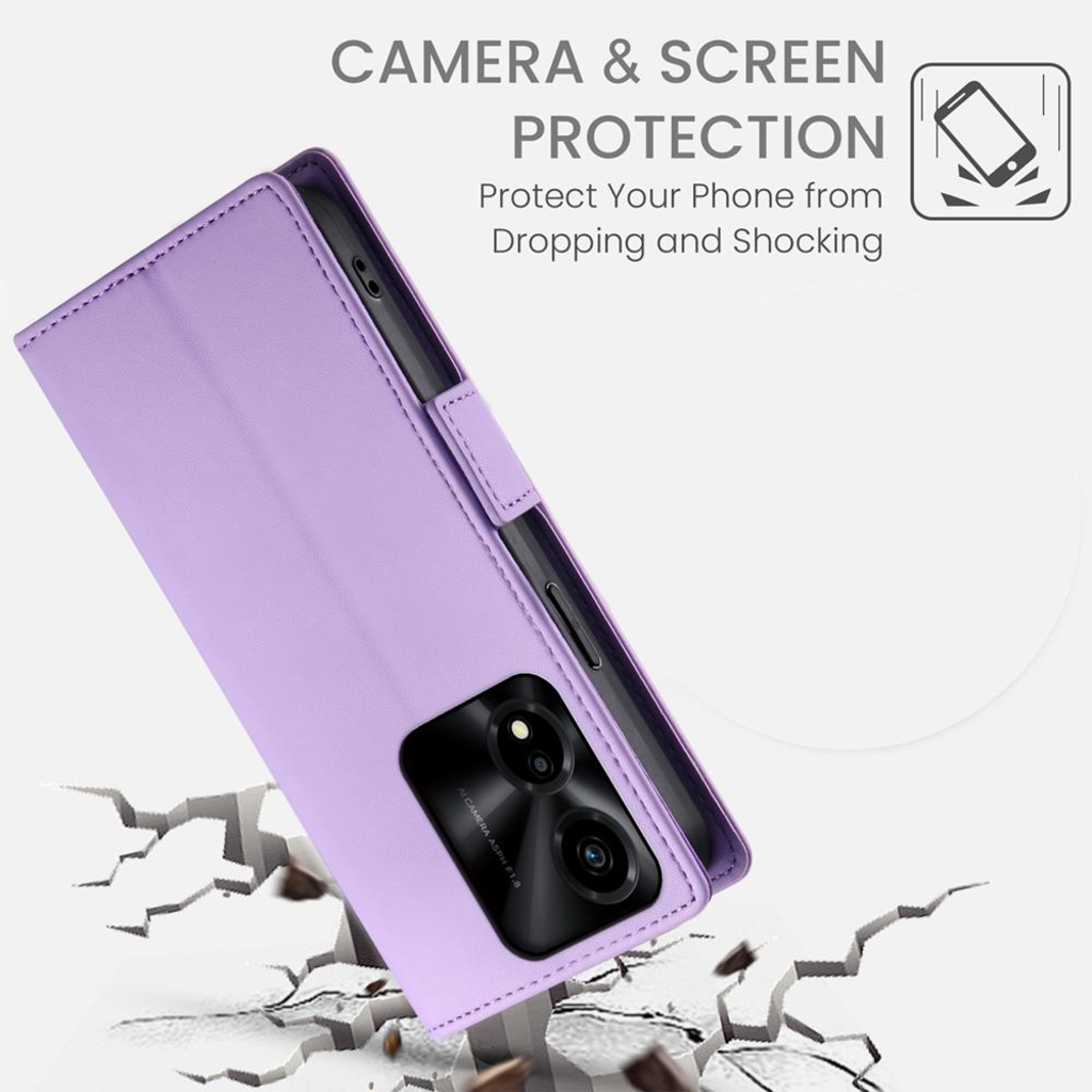Honor X5c Plus - oldalsó csatos, mágneses, matt műbőr telefontok, fliptok lila