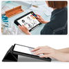 A multifunkcionális előlap okos állványként is funkcionál, amely több dőlésszöget kínál. Kényelmesen használhatja filmnézéshez, videóhívásokhoz, gépeléshez, vagy akár kreatív munkákhoz, mint a rajzolás és jegyzetelés. Az integrált ébresztési és alvó funkció intelligensen ébreszti fel vagy altatja el az iPadet a fedél kinyitásakor vagy lezárásakor, ezzel jelentősen hozzájárulva az akkumulátor élettartamának meghosszabbításához. A mágneses záródás gondoskodik arról, hogy a tok stabilan zárva maradjon szállítás közben, extra védelmet nyújtva a képernyőnek.