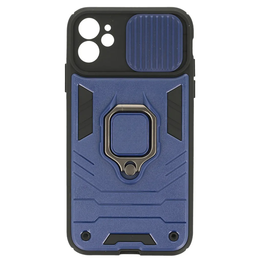 iPhone 11 Ring Lens tok kameralencse védővel és kihajtható támasszal sötétkék
