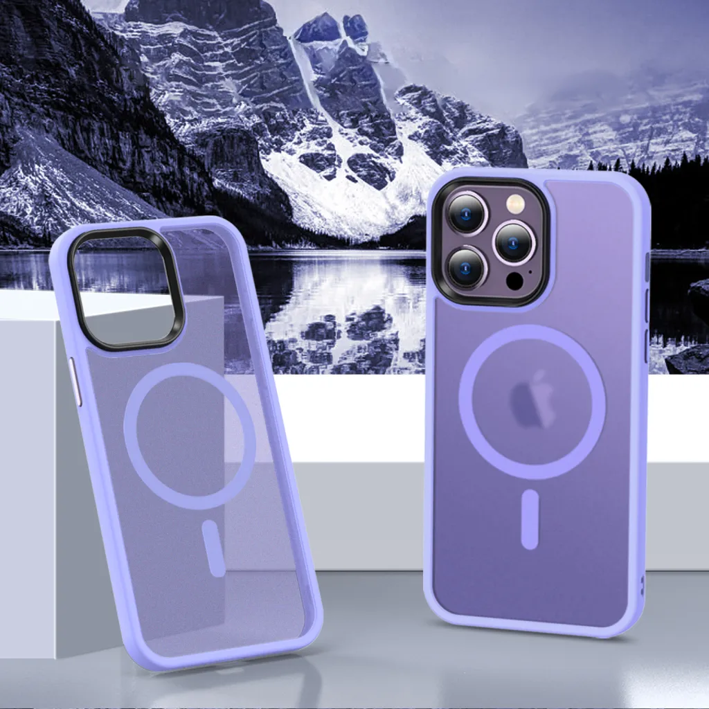 iPhone 15 Pro Max MagSafe-kompatibilis áttetsző matt tok világoslila Alphajack