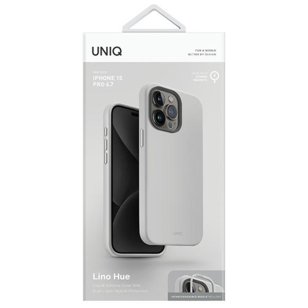 Technikai adatok: Márka: Uniq, Kollekció: Lino Hue, Típus: Kemény tok, Anyag: TPU/Szilikon, Szín: Világosszürke, Kompatibilitás: iPhone 15 Pro Max 6.7"