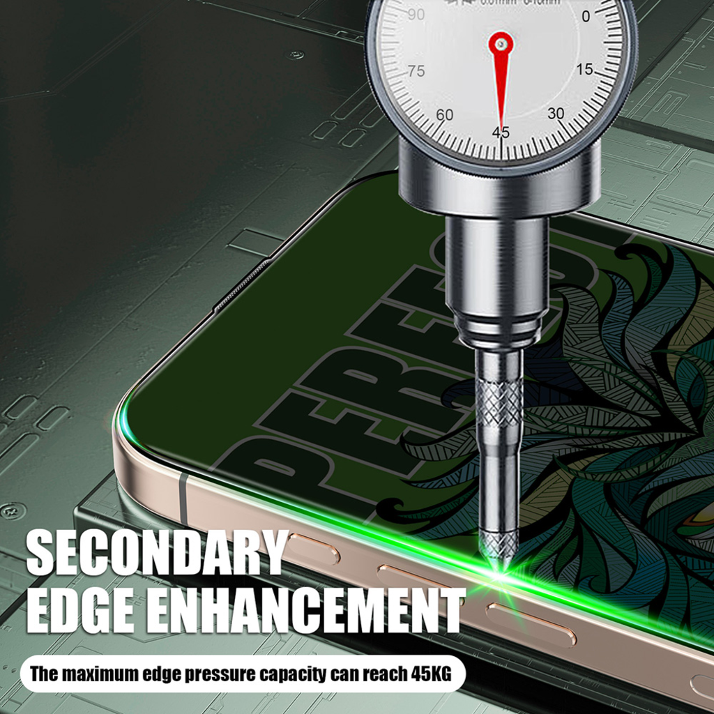 - Megerősített élek: Az "SECONDARY EDGE ENHANCEMENT" technológia révén a fólia szélei is extra védelmet kapnak. Ez a megerősített kialakítás akár 45 kg élnyomásnak is ellenáll, jelentősen csökkentve az élek berepedésének kockázatát.