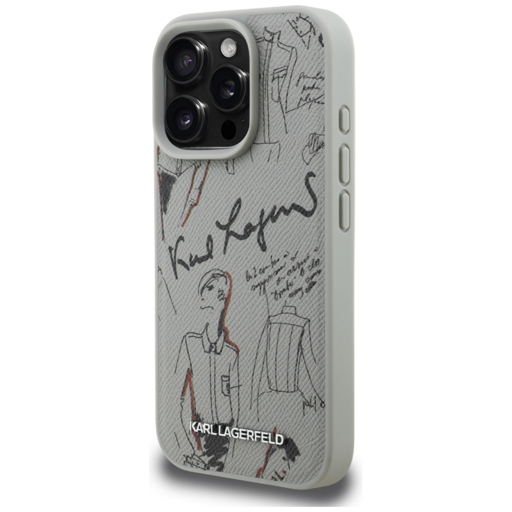 iPhone 16 Pro Karl Lagerfeld Szemcsés Mintázat & Logó MagSafe szürke tok