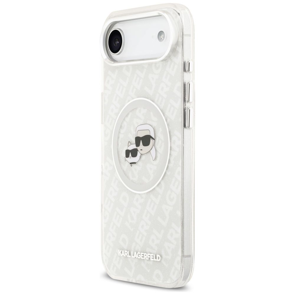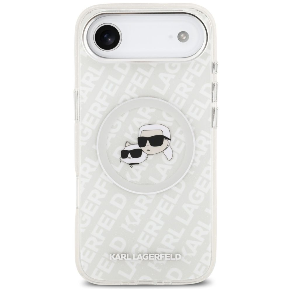 iPhone 17 Air Karl Lagerfeld IML Glitter Karl & Choupette fejek logó MagSafe szürke tok
