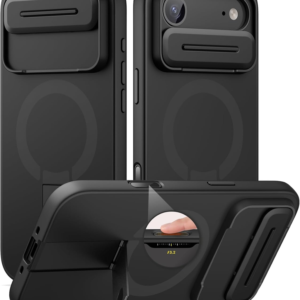 iPhone 17 Air Suritch MagSafe ütésálló tok kihajtható állvánnyal és kameravédővel fekete