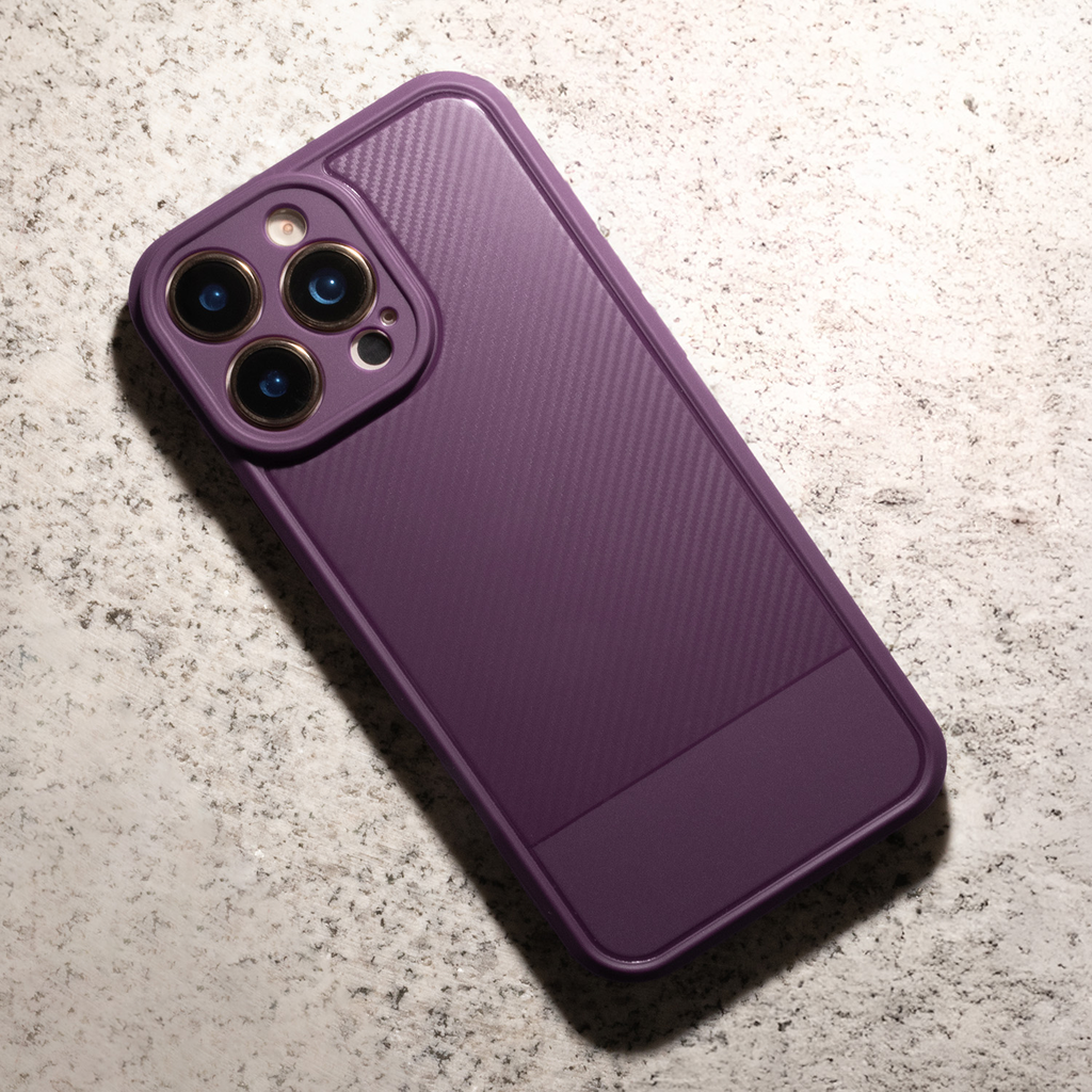 A rugalmas TPU-ból készült borító hatékonyan védi az eszköz testét a karcolásoktól és kisebb ütésektől. A felület egy markáns szénmintázattal modern, technikai megjelenést kölcsönöz. A kamera modul körüli kiemelkedő él további védelmet nyújt az objektíveknek.