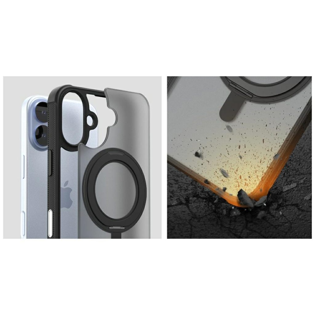 Elegáns védelem, amely különbséget jelent. Az Araree Duple M Stand MagSafe tok iPhone 17-re elegáns, funkcionális és megbízható védelmet nyújt ultra könnyű formában. Kiváló minőségű polikarbonátból és rugalmas TPU-ból készült, így hatékonyan védi a telefont a karcolásoktól, ütésektől és véletlen leejtésektől, anélkül, hogy elnehezítené a karcsú dizájnt. A sarkokba beépített AirCaps technológia párnarendszerként működik, minimalizálva a károk kockázatát még váratlan ütközések során is.