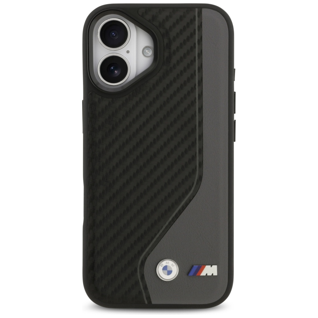 Exkluzív BMW tok az M Carbon Logo MagSafe kollekcióból, prémium minőségű borítás, amelyet a világ egyik legnépszerűbb autógyártó vállalata támogat. Tökéletes választás minden MagSafe technológiával rendelkező készülék tulajdonosának. Az M Carbon Logo tok kombinálja a tartósságot a sportos karakterrel. A felület szénszálas mintával és elegáns antracit színű ökobőrrel van bevonva. Egy fém BMW logó díszíti, amely igazolja a termék hitelességét és kiemeli annak presztízsét. A kamera kerete és a gombok fekete színűek, ami elegáns és összetartó megjelenést kölcsönöz a toknak.