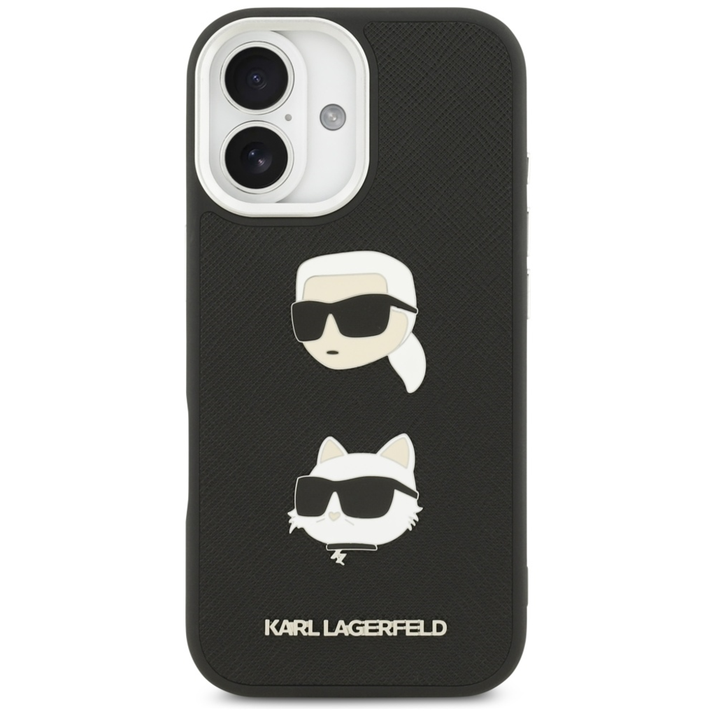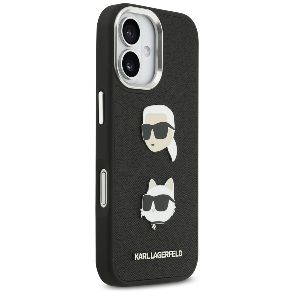 iPhone 17 Karl Lagerfeld FW Grained Karl & Choupette Heads Pins & Logo fekete tok