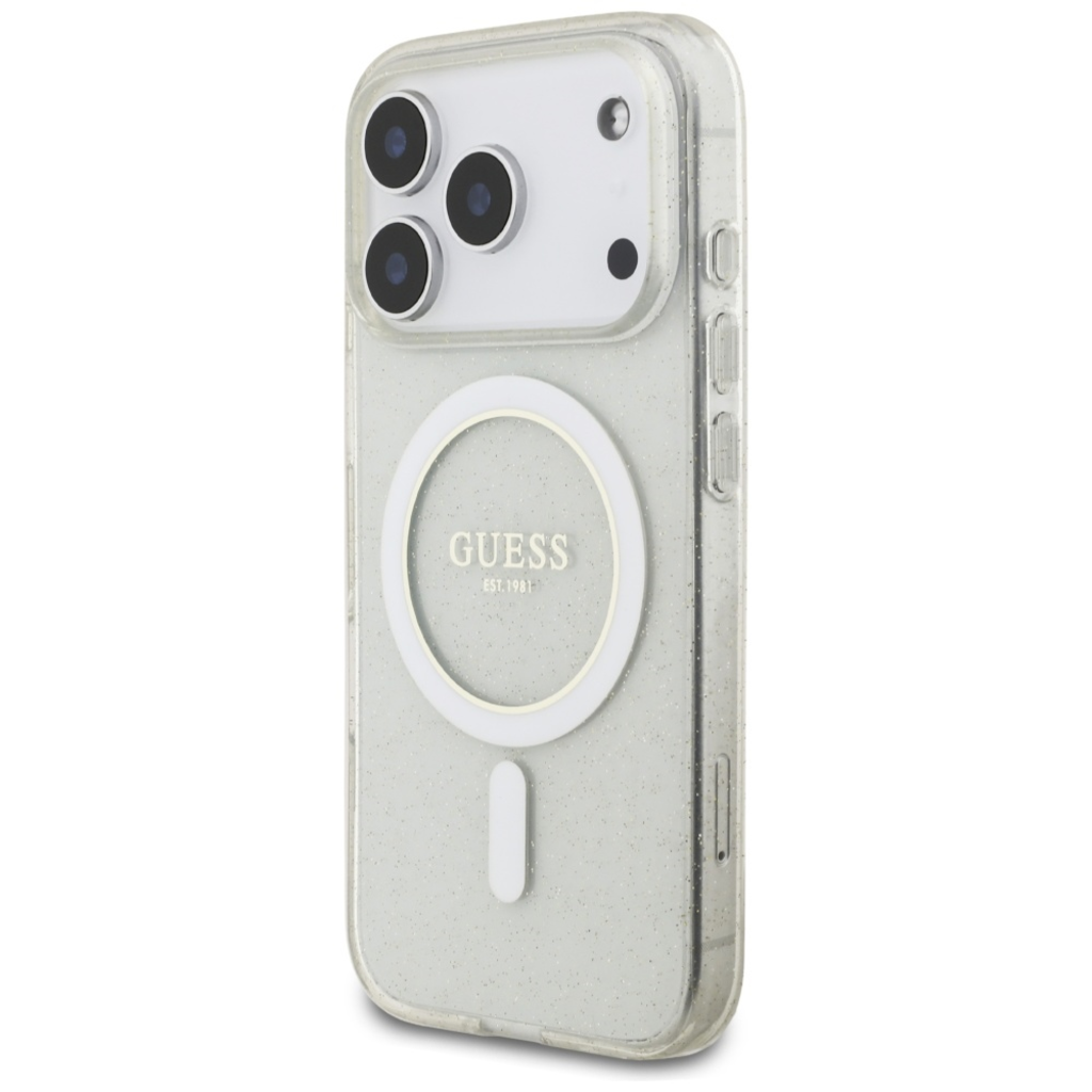 Az iPhone 17 Pro Guess IML Csillogó Gyöngy Szíjas MagSafe Tok a divat és a funkcionalitás tökéletes ötvözete. Ez az átlátszó tok a prémium Guess márka eleganciáját képviseli, miközben kiemeli telefonja eredeti szépségét egy diszkrét, de mégis feltűnő, beépített csillogással. Az IML (In-Mould Labelling) technológiának köszönhetően a ragyogó részecskék tartósan be vannak ágyazva az anyagba, így nem kopnak le és hosszan megőrzik fényüket. A tok hátoldalán elegánsan elhelyezett ikonikus Guess logó ("GUESS EST. 1981") a kifinomult ízlés garanciája.