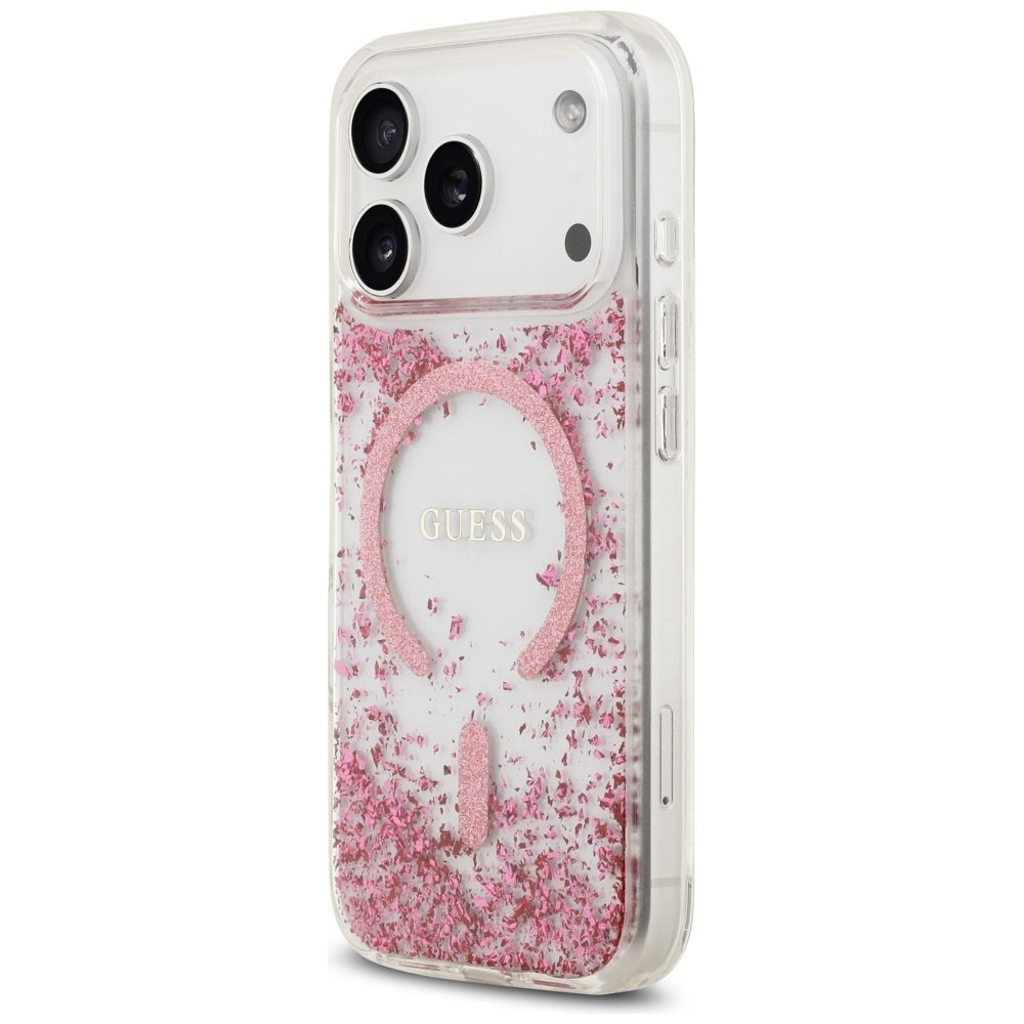 iPhone 17 Pro Guess Resin Bottom Glitter MagSafe tok rózsaszín