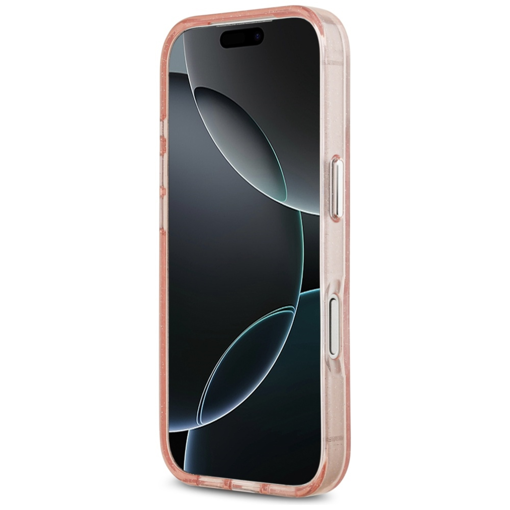 A tok áttetsző rózsaszín árnyalata finom csillámokkal van tele, amelyek minden fényben gyönyörűen megcsillannak, igazi luxus érzetet kölcsönözve. A hátlapon a Karl Lagerfeld márkanév finom, ismétlődő mintája látható, mely diszkrét, mégis felismerhető. A tok középpontjában egy kiemelt, kör alakú MagSafe rész található, benne a divattervező, Karl Lagerfeld és ikonikus macskája, Choupette stilizált fejeivel, napszemüveges ábrázolással. Ez a jellegzetes motívum azonnal felismerhetővé teszi a tokot és igazi divatnyilatkozattá varázsolja készülékét.