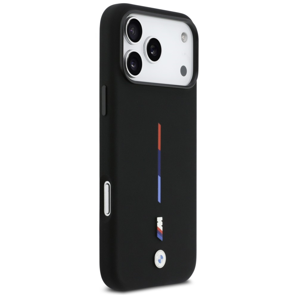 iPhone 17 Pro Max BMW M Szilikon Trikolor Vonal MagSafe tok Fekete