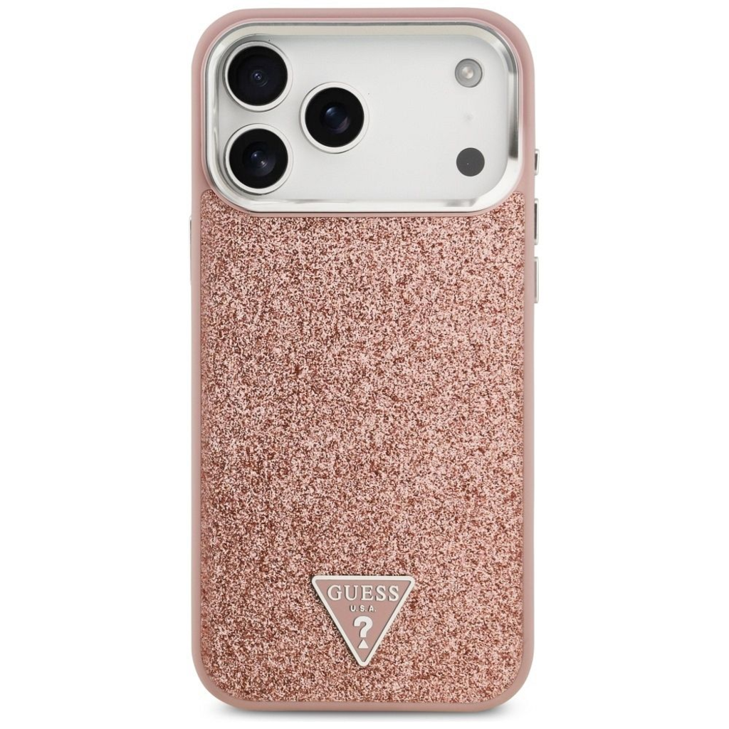 iPhone 17 Pro Max Rózsaszín Guess Csillámos Háromszög Logó MagSafe tok