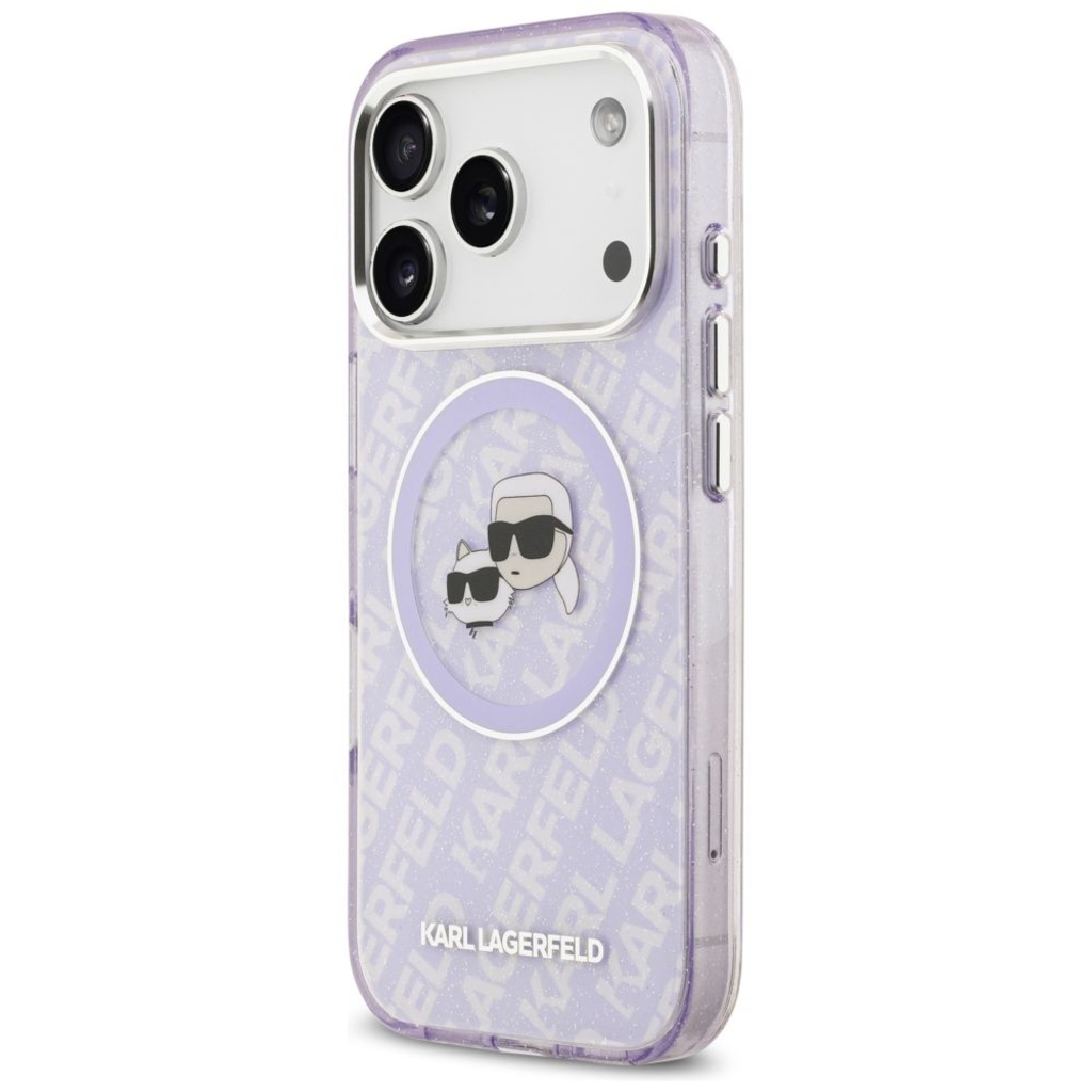 iPhone 17 Pro Max Karl Lagerfeld IML Csillogó Karl & Choupette Fejek Logó MagSafe tok Lila tok