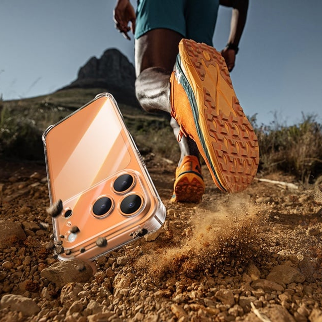Teljes kamera- és képernyővédelem. A lencsék (0,65 mm) és a képernyő (1,7 mm a sarkoknál) körüli megemelt élek minimalizálják a karcolások és repedések kockázatát, miközben a beépített gombvédelem fenntartja a teljes funkcionalitást, és megvédi a gombokat a portól. Az ultraátlátszó TPU-anyag feltárja a telefon eredeti megjelenését, míg a sárgulásálló bevonat hosszú ideig tisztán tartja a tokot.