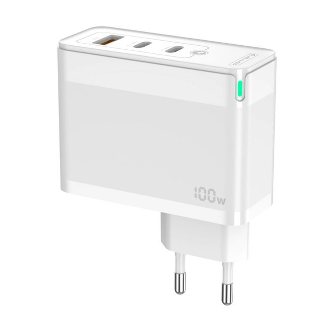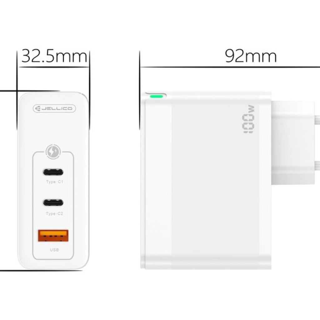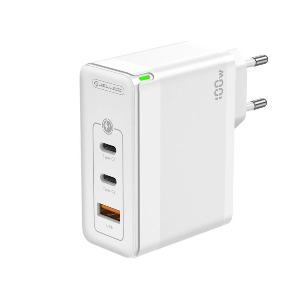 JELLICO fali töltő C118 GaN PD 100W 2xUSB-C + 1xUSB QC3.0 + kábel USB-C - USB-C Fehér