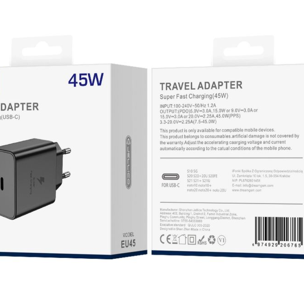 Az EU szabványú csatlakozóval ellátott fekete töltő kompakt méretének köszönhetően ideális otthoni használatra, irodába vagy utazáshoz egyaránt. A JELLICO EU45 töltő kizárólag kompatibilis mobil eszközökkel használható. Az adapter intelligensen állítja be a töltési feszültséget és áramerősséget a mobiltelefon aktuális töltési feltételeinek megfelelően, biztosítva a leggyorsabb és legbiztonságosabb töltést. Fontos megjegyezni, hogy a jótállás nem terjed ki a nem rendeltetésszerű használatból eredő mesterséges károkra.