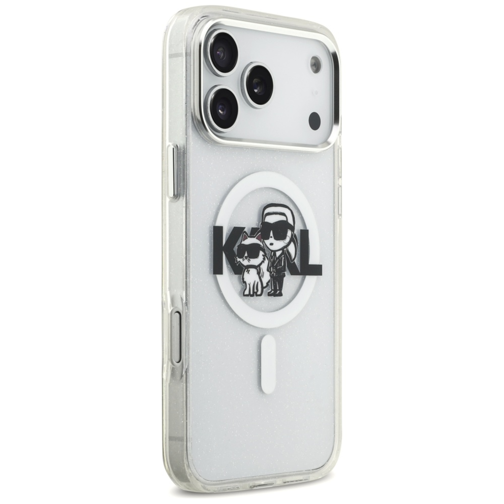 iPhone 17 Pro Max Átlátszó Karl Lagerfeld IML Glitter Karl & Choupette Sketch Logo MagSafe tok