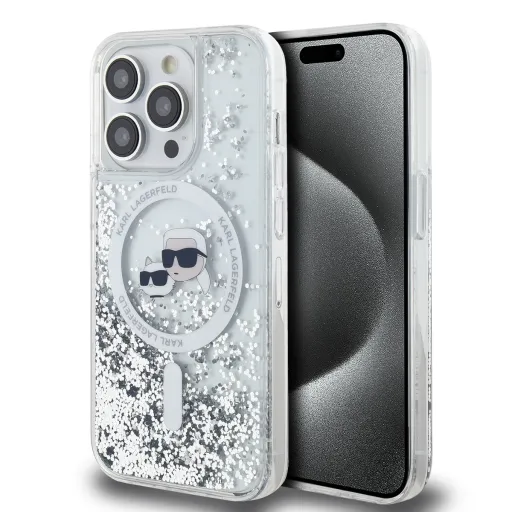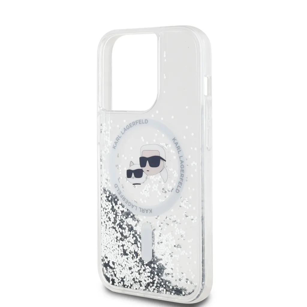Karl Lagerfeld Liquid Glitter Karl és Choupette Heads MagSafe tok iPhone 13 Pro Max-hoz Átlátszó