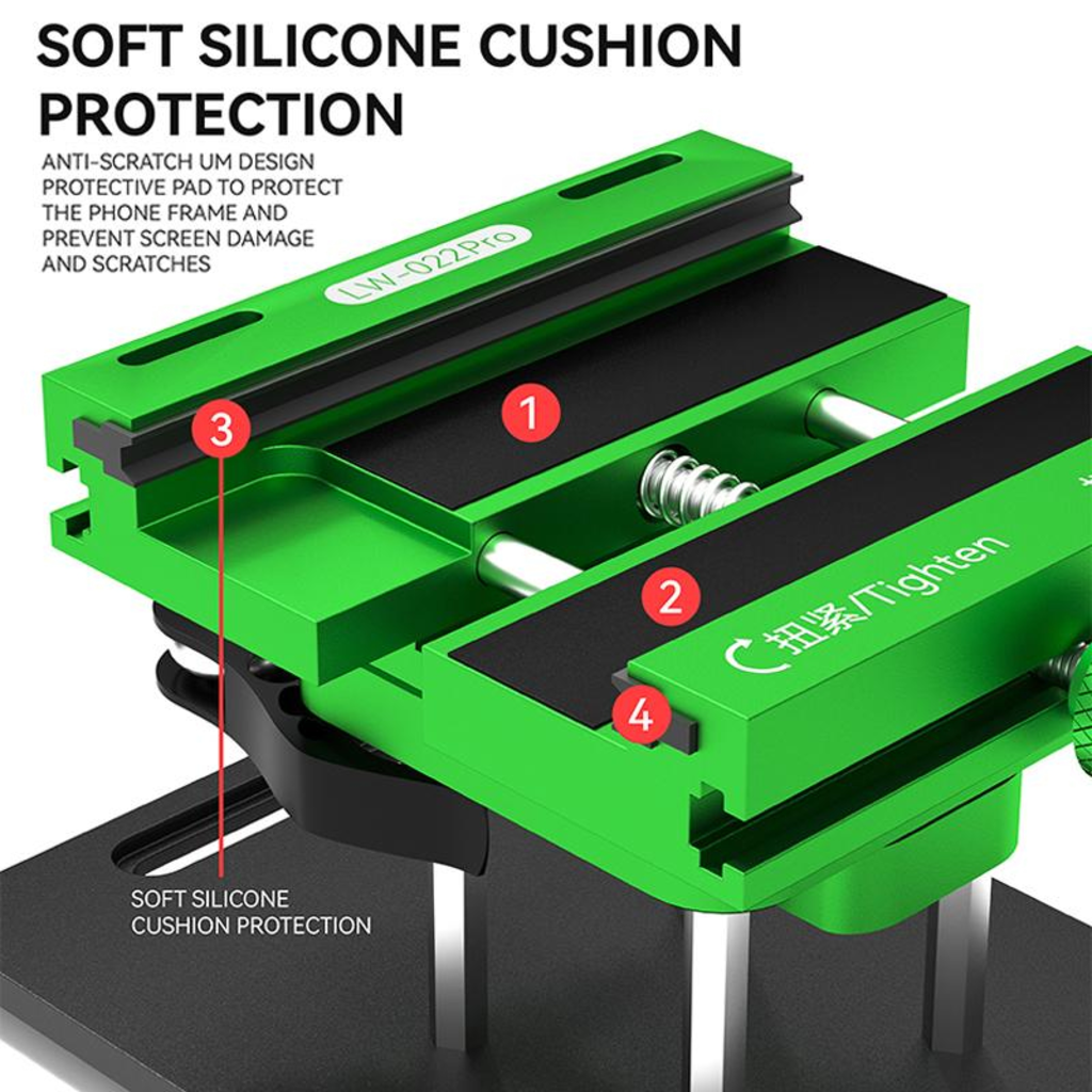 A Luowei LW-022 Pro Képernyő Szétszerelő Eszköz egy professzionális 2-az-1-ben készülék, amely hatékony és biztonságos telefonjavításra lett tervezve. A 360 fokban forgatható szorítóval lehetővé teszi a telefon szabad forgatását és biztonságos tartását, hogy minden szögből könnyen hozzáférhető legyen. Az állítható szorítótávolság 63 és 95 mm között biztosítja a kompatibilitást a legtöbb telefonmodellel. Erős tapadókoronggal van felszerelve a képernyő szétválasztásához, és speciálisan tervezett horonnyal védi a kamerát, megelőzve a károsodást a szétszerelés során. A rögzítő funkció maximális stabilitást biztosít használat közben, megkönnyítve a javításokat és a gyors akkumulátor eltávolítást.