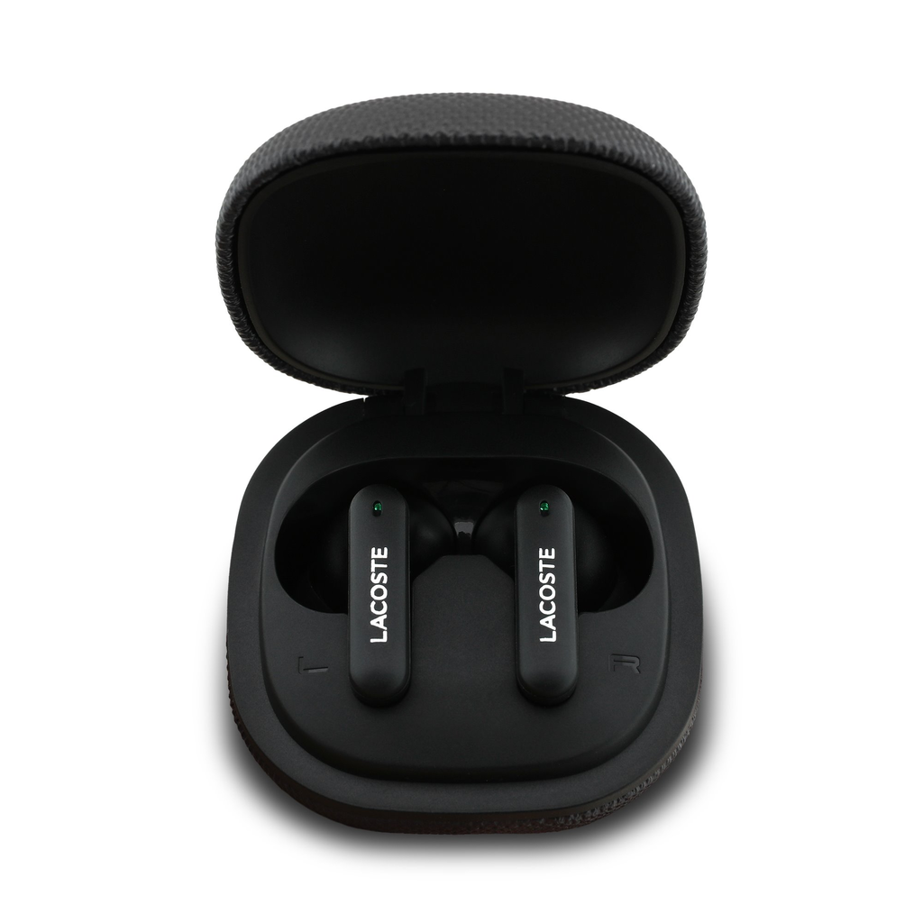 • Stílusos töltőtok: Az elegáns Lacoste logóval ellátott töltőtok nemcsak védi a fülhallgatót, hanem teljesen feltöltve tartja. A tok kompakt, könnyen elfér a zsebében vagy a táskájában.