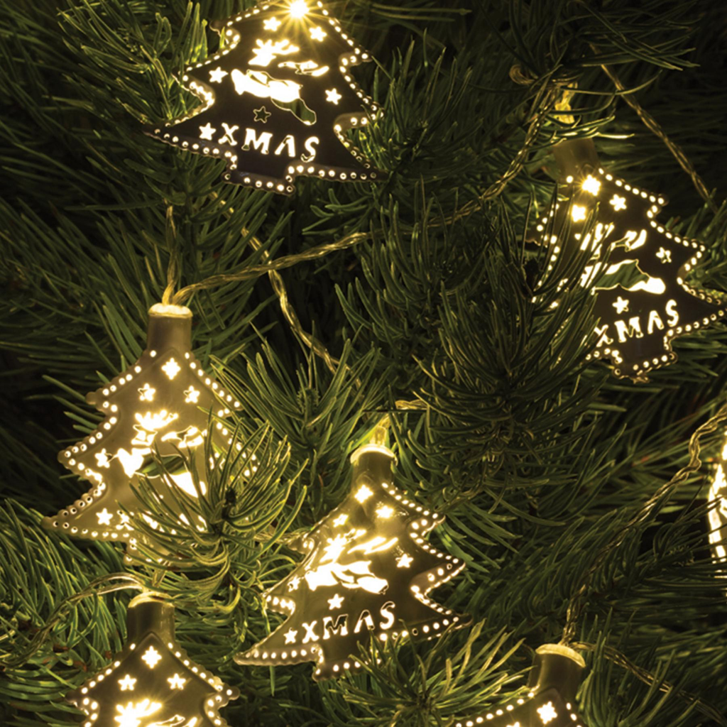 | Egyéb | 10 db, 7 cm magas fém fenyő díszek, ki/be kapcsolható |